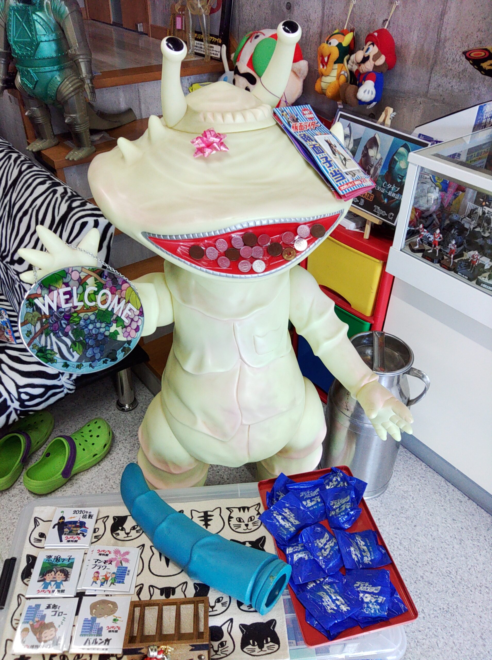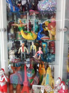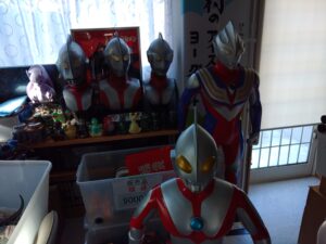 2か月ぶりの初乗りで佐久間ダムに「頼朝桜」を見に行ったのですがそれより以前CCAメンバーより聞いていた「ソフビ博物館」が気になってまして。何度か伺ったのですが定休日(不定期)で今日やっと入ることが出来ました。入ると正面にカネゴンがお出迎え、その奥にウルトラマン、ショーケース内にはウルトラQ~ウルトラマン・ウルトラマン・・・と歴代のソフビがびっちり並んでいます。オーナーさんが子供のころから集めていた物だそうです。
