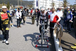 前回は、高橋松吉監督と選手お二人が参加され、一緒に走るだけではなく、白浜の昼食会場では三本ローラーの体験指導も行っていただき、お昼のひと時が大いに盛り上がっていました。