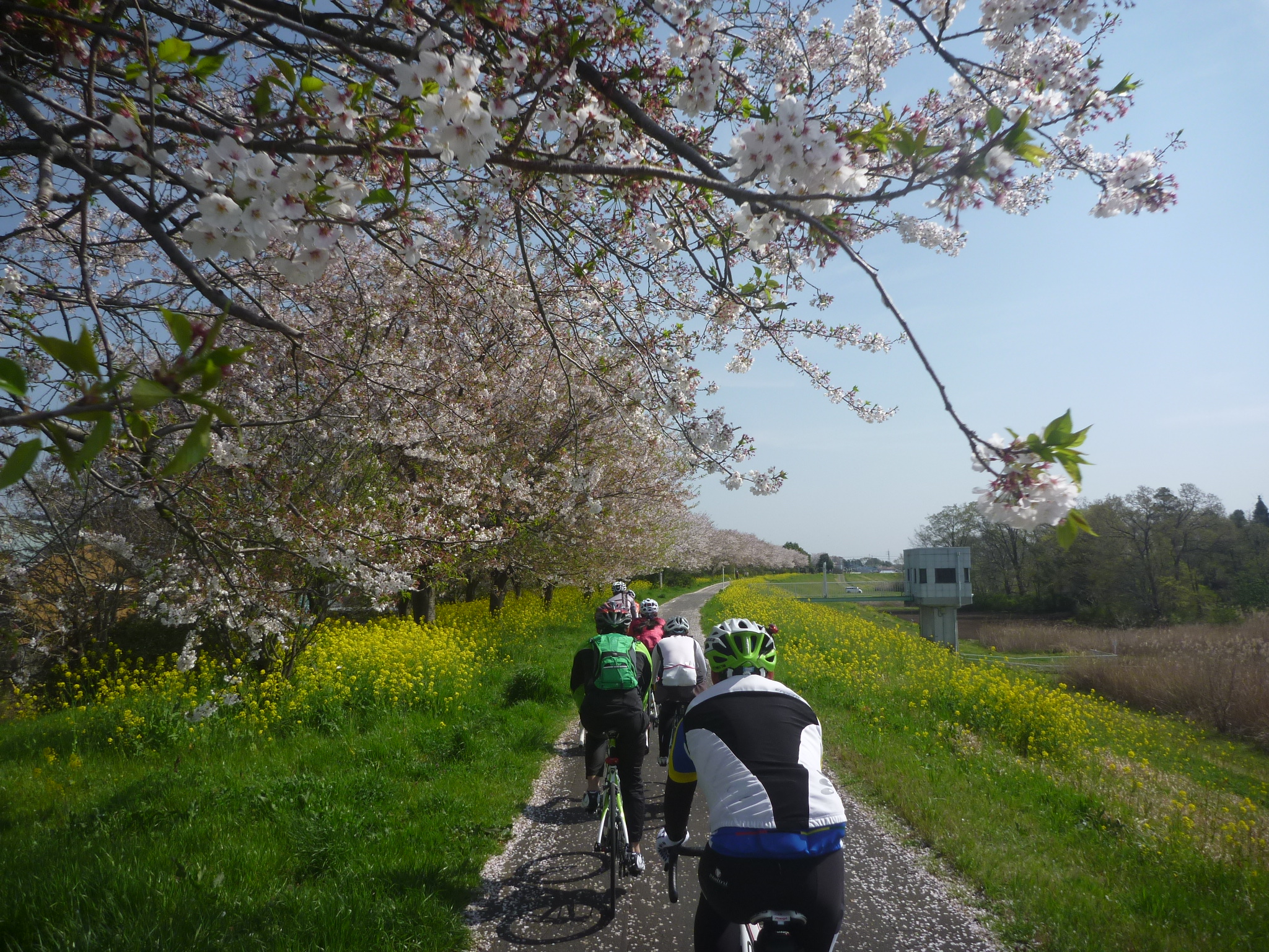 八重桜に彩られた柏の葉キャンパス駅前をスタートし、利根運河を経て利根川へ出ると、早速満開の菜の花が迎えてくれました。