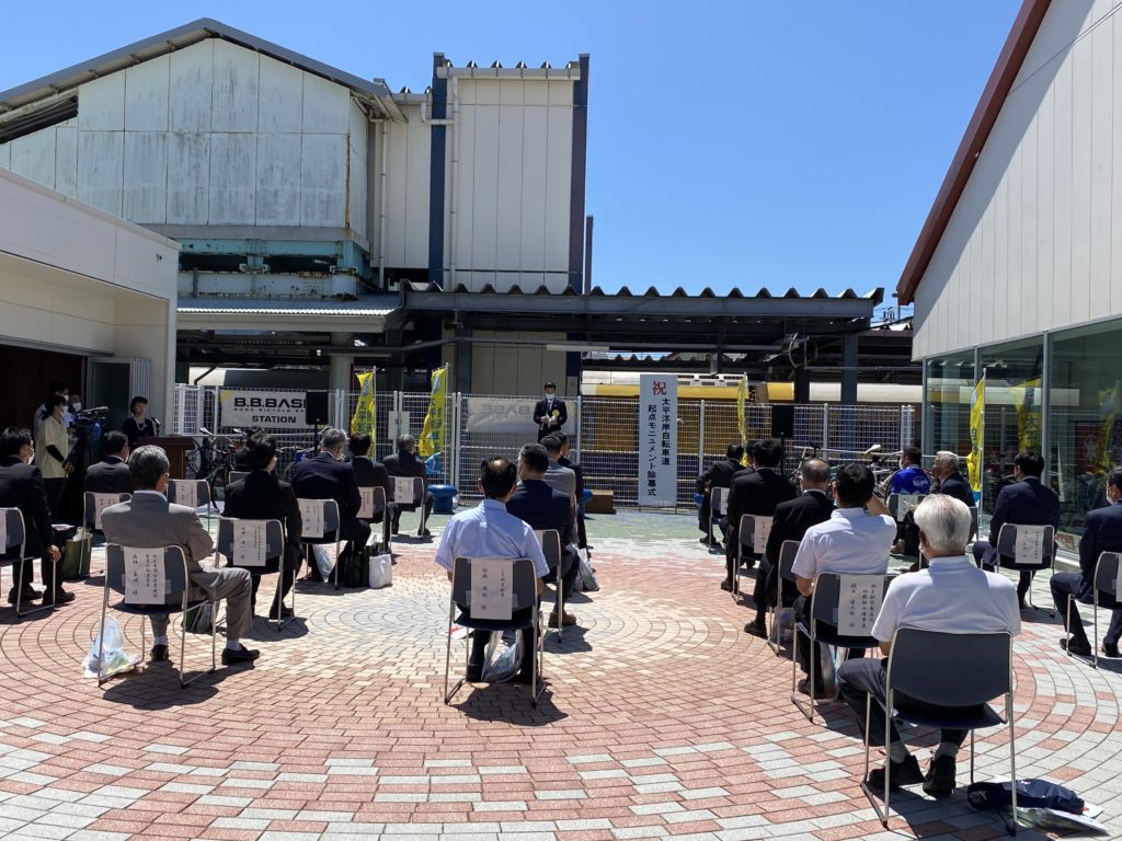 国会議員、県議会議員、銚子市の関係者や団体、施工主である県土環境課の皆さま、そして太平洋岸自転車道の終点である和歌山県より4名の関係者の方々が出席され、総勢40名近くが着席されていました。