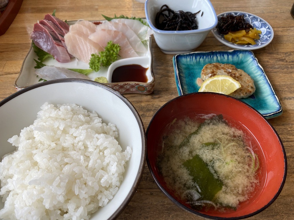 昼食は野島崎灯台にある食堂で、地元の魚定食を堪能されました。
